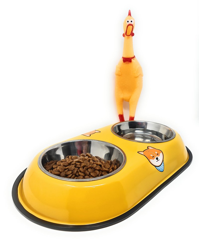 Después de una cuantas horas observando (por esto es importante desarrollar la capacidad mental de observación) me di cuenta de que podría crear una disrupción en la categoría de platos para perros, ¿cómo? Pues lo que hice fue incluir en el plato un pollo de goma que hace sonidos cuando lo aplastas, el cual es muy famoso en YouTube: