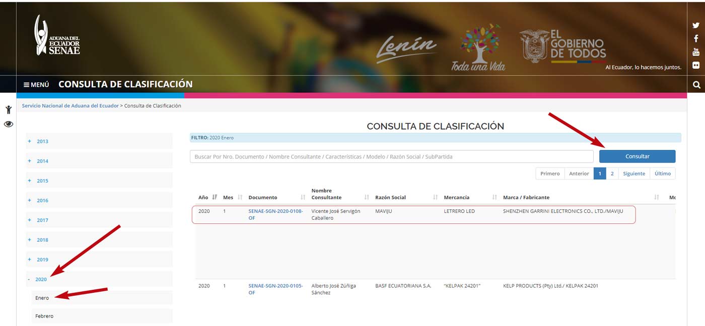 Link: Aduana Ecuador para consultar clasificación arancelaria