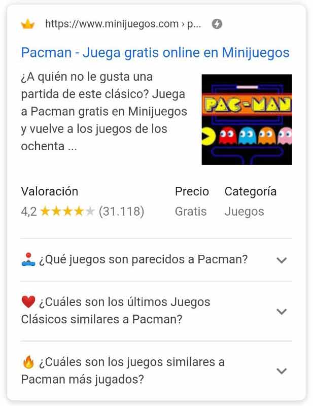 - Listado de los rich snippet y featured snippet de Google vistos en móviles