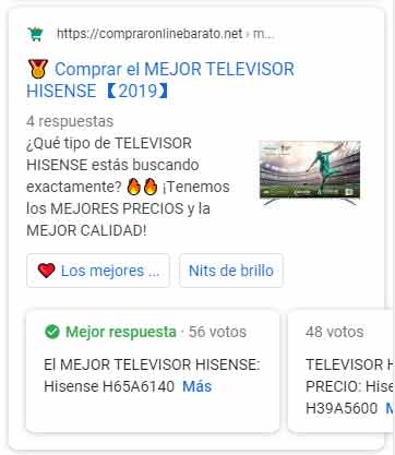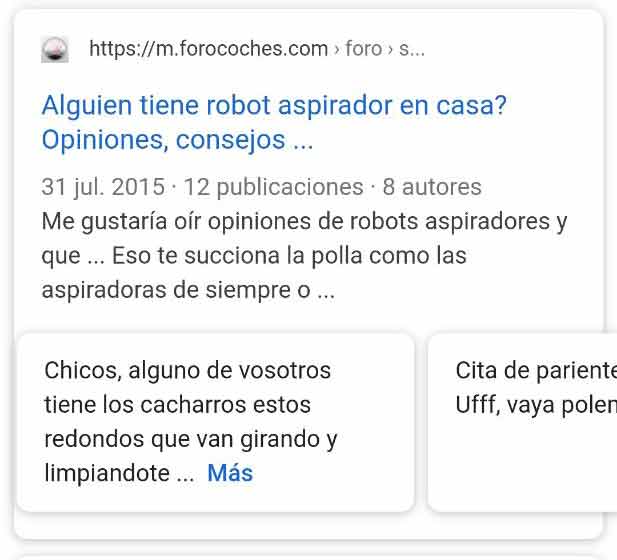 - Cajón de resultado rogánico de foro con mini-snippets de hilos del foro: