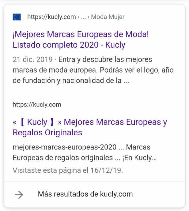- Cajón doble canibalizando urls + en la parte inferior enlace con más resultados de la web con el comando site: