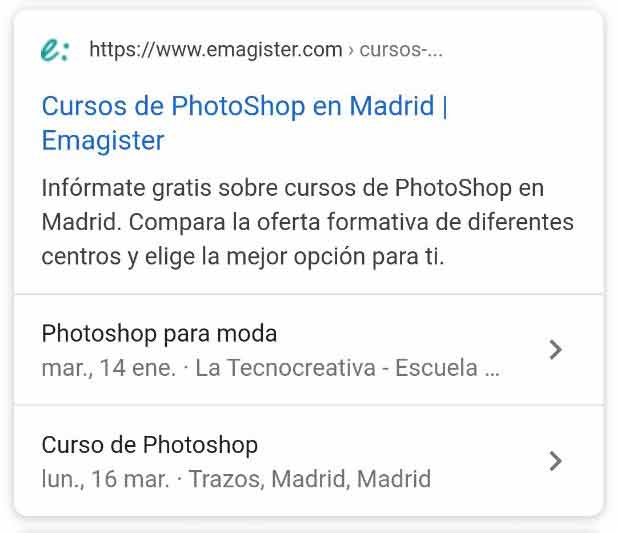 - Ejemplo de Rich snippet de cursos: