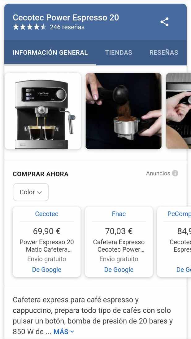 - Featured Snippet avanzado de Google Shopping: