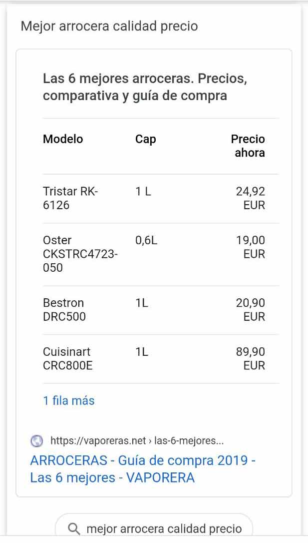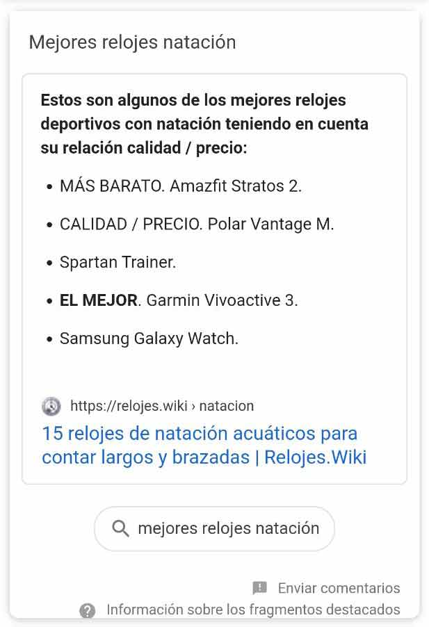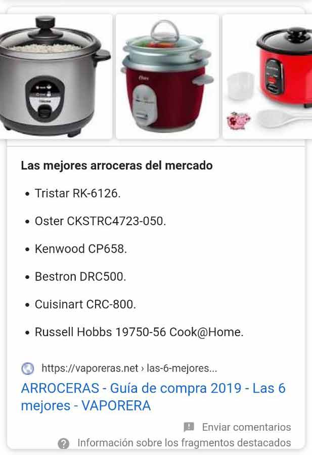 ➤ Listado de rich snippet y featured snippet en móviles 2020