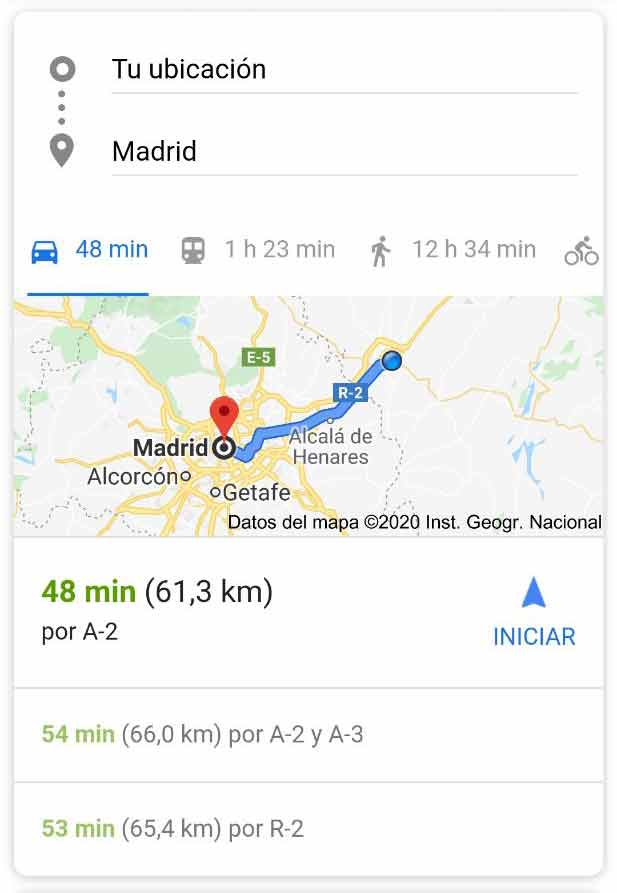 - Featured Snippet de Google Maps (aparece cuando pones en Google: Cómo llegar a + «tu destino»):