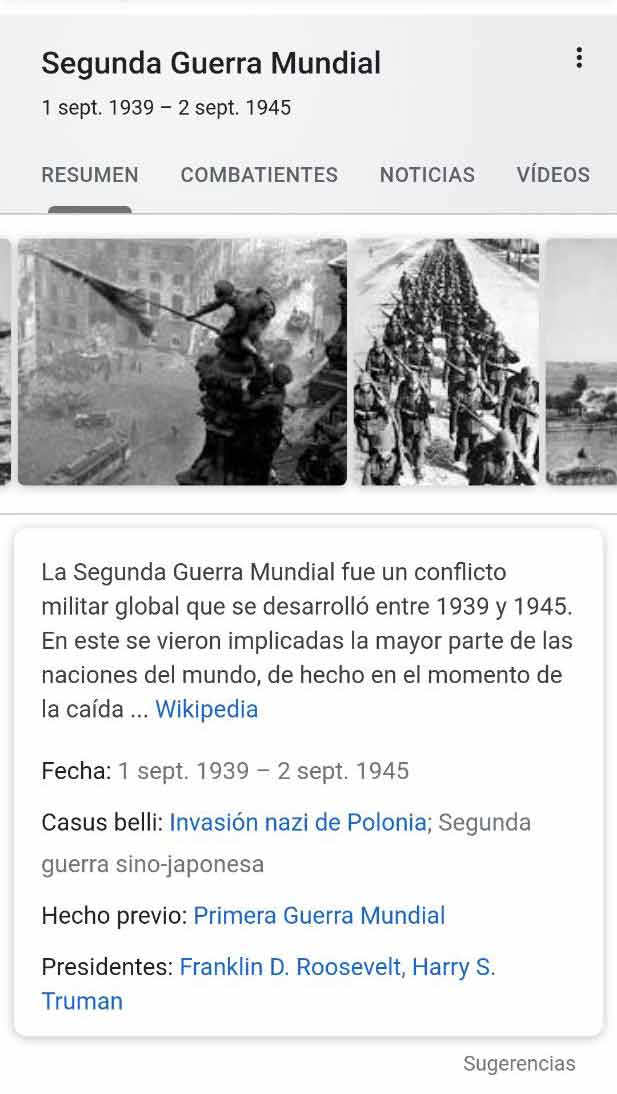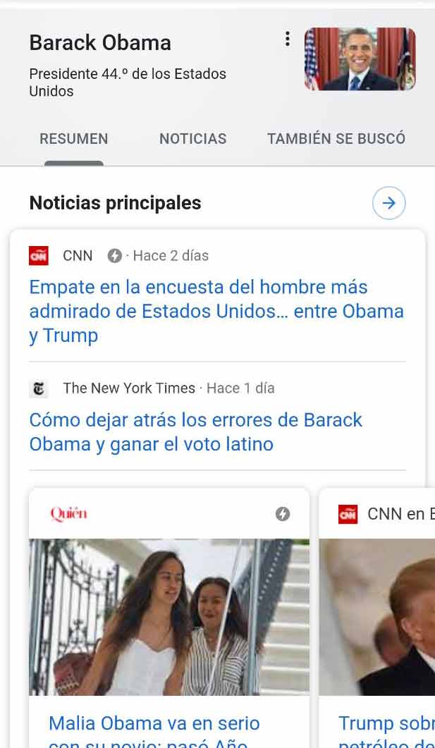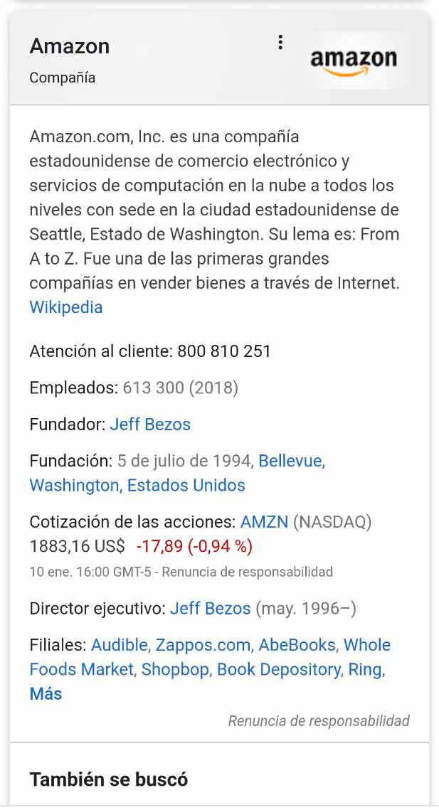 - También leerás la palabra Knowledge que hace referencia a un panel de conocimiento que puede incluir marcas, personas o cualquier entidad. Los reconocerás de inmediato porque en la parte de arriba (el encabezado) es un poco más oscuros