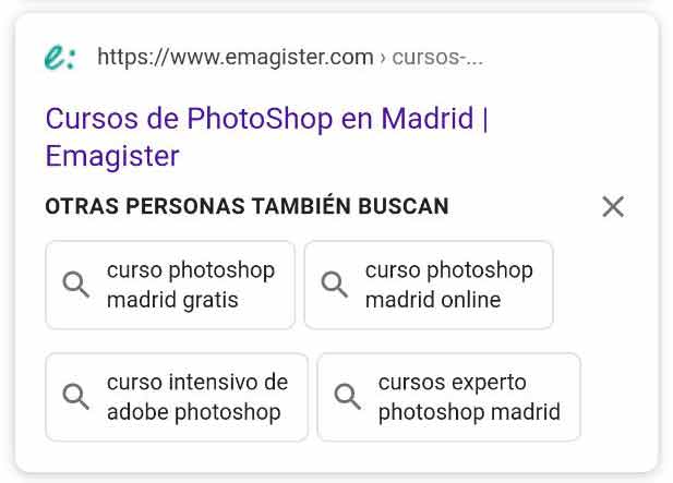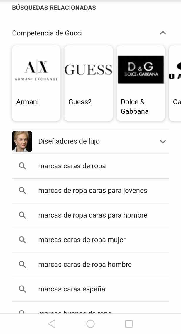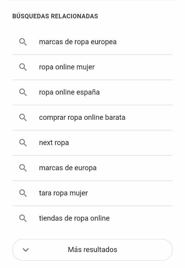 - Sección normal de las búsquedas relacionadas: