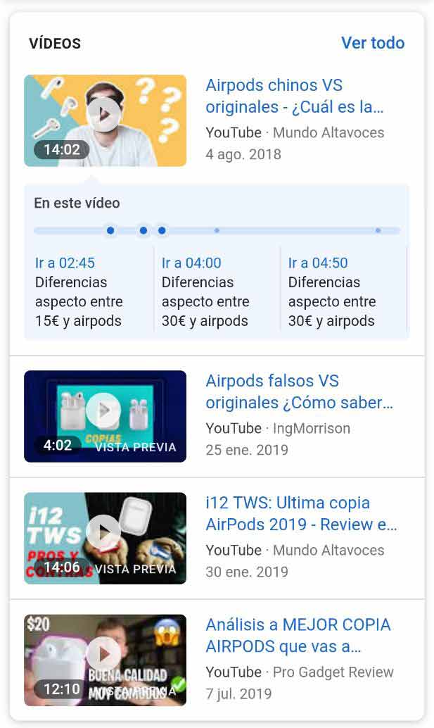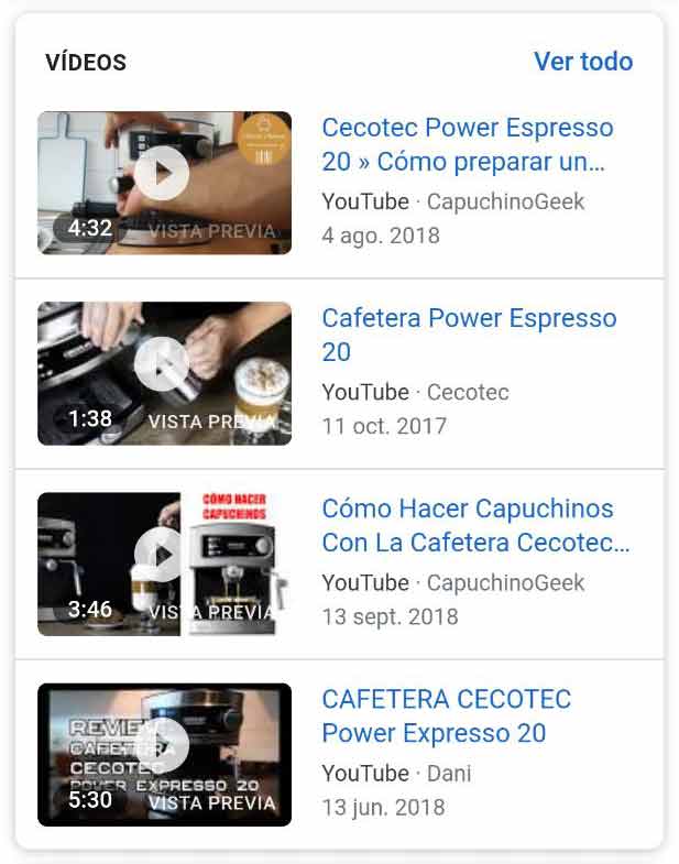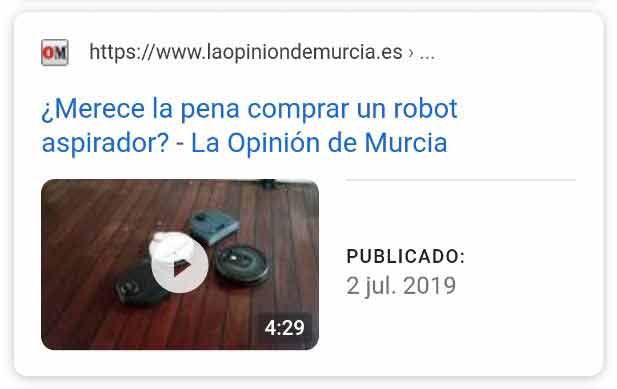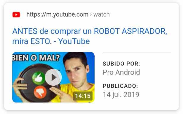 - Snippet con vídeo de YouTube como resultado orgánico: