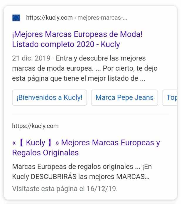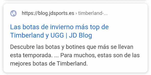 - Resultado orgánico normal + acceso a los encabezados: