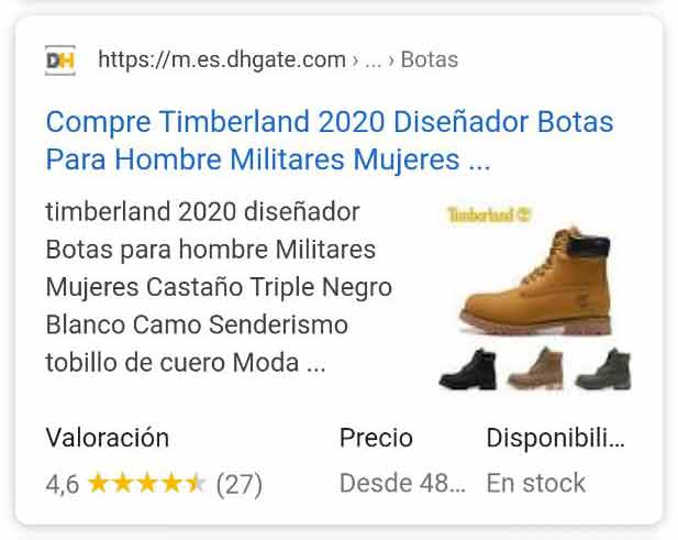 - Snippet de Google Shopping: