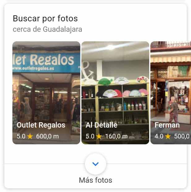 - Cajón orgánico con las Fotos del local pack para comprar productos. Si tienes un ecommerce, esta es una gran oportunidad para arañar ventas orgánicas: