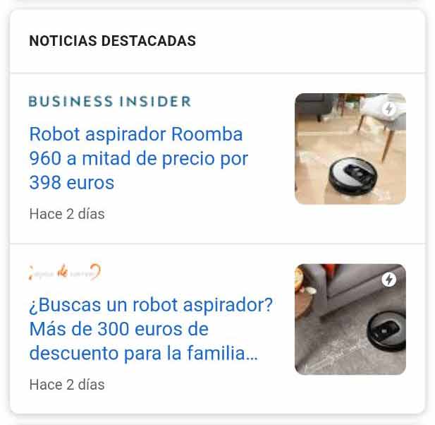 - Featured Snippet con imágenes en carrusel + listado de productos: