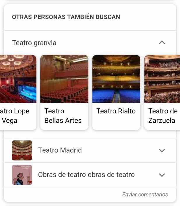 - Snippet orgánico Otras Personas También Buscan + Carrusel de imágenes:
